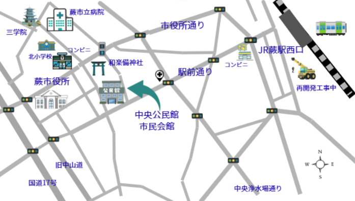 定例会、会議については、原則として、蕨市立中央公民館を活動場所としています。また、わらび介護者ホッとおしゃべりサロン会場も同公民館です。